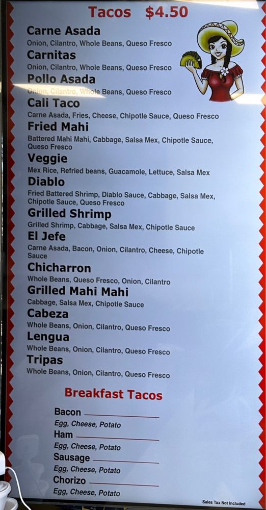 Welcome to Valerie's Tacos, a delightful taco shop nestled in Oceanside, CA, specializing in breakfast and brunch tacos. Their menu is a taco lover's dream, featuring items like the Al Pastor Burrito, loaded with marinated pork, guacamole, and fresh cilantro, alongside a variety of options like the California Burrito and crispy Fried Mahi Burrito.